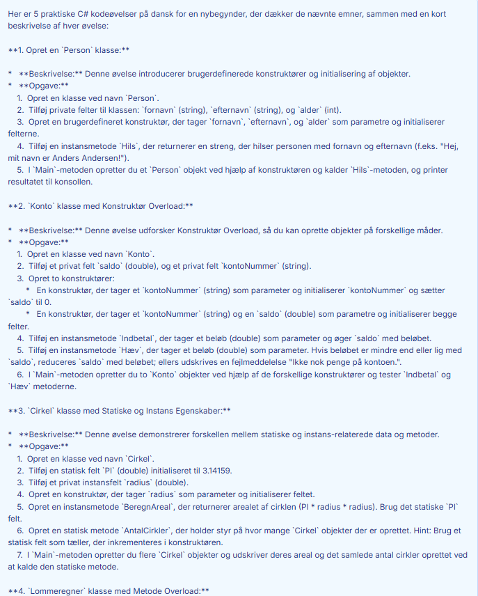 Billeder viser gemini forslag til øvelser. Er tilføjet manuelt Alt andet er lavet med Ai incl web-siden
